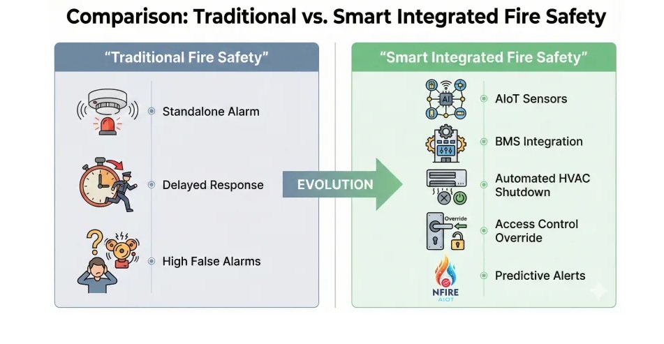 Τα παραδοσιακά συστήματα συναγερμού πυρκαγιάς λειτουργούσαν ως αυτόνομες συσκευές ασφαλείας—αντιδραστικές, απομονωμένες και περιορισμένες στην ικανότητά τους να επικοινωνούν με άλλα κτιριακά συστήματα. Τα σημερινά έξυπνα κτίρια απαιτούν περισσότερα: ολοκληρωμένα, προγνωστικά και έξυπνα οικοσυστήματα πυρασφάλειας που λειτουργούν άψογα με συστήματα HVAC, ελέγχου πρόσβασης, φωτισμού και διαχείρισης έκτακτης ανάγκης.