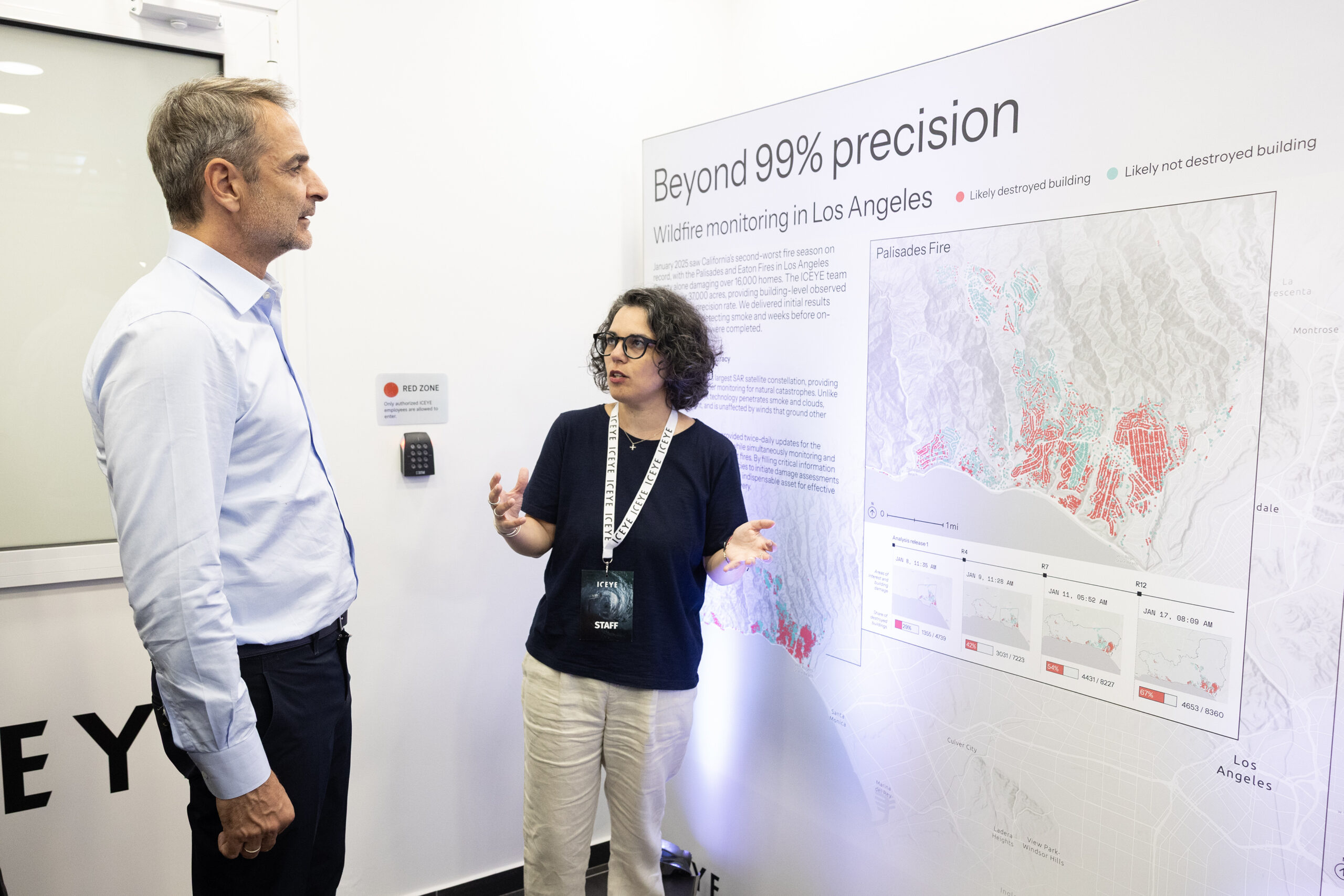 Κατά τη διάρκεια της επίσκεψης ο Κυριάκος Μητσοτάκης ενημερώθηκε από την ηγεσία της ICEYE για τους δύο πρώτους δορυφόρους SAR που κατασκευάζονται από την εταιρεία για λογαριασμό του ελληνικού κράτους και αναμένεται να τεθούν σε τροχιά μέχρι τα τέλη του 2025, συμβάλλοντας σημαντικά στις δράσεις του Εθνικού Προγράμματος Μικροδορυφόρων. Πλέον τα τμήματα που κατασκευάζονται αυτη τη στιγμή στην Ελλάδα αποτελούν περίπου το 15% κάθε δορυφόρου και εξάγονται για την κατασκευή του παγκόσμιου στόλου της εταιρείας.