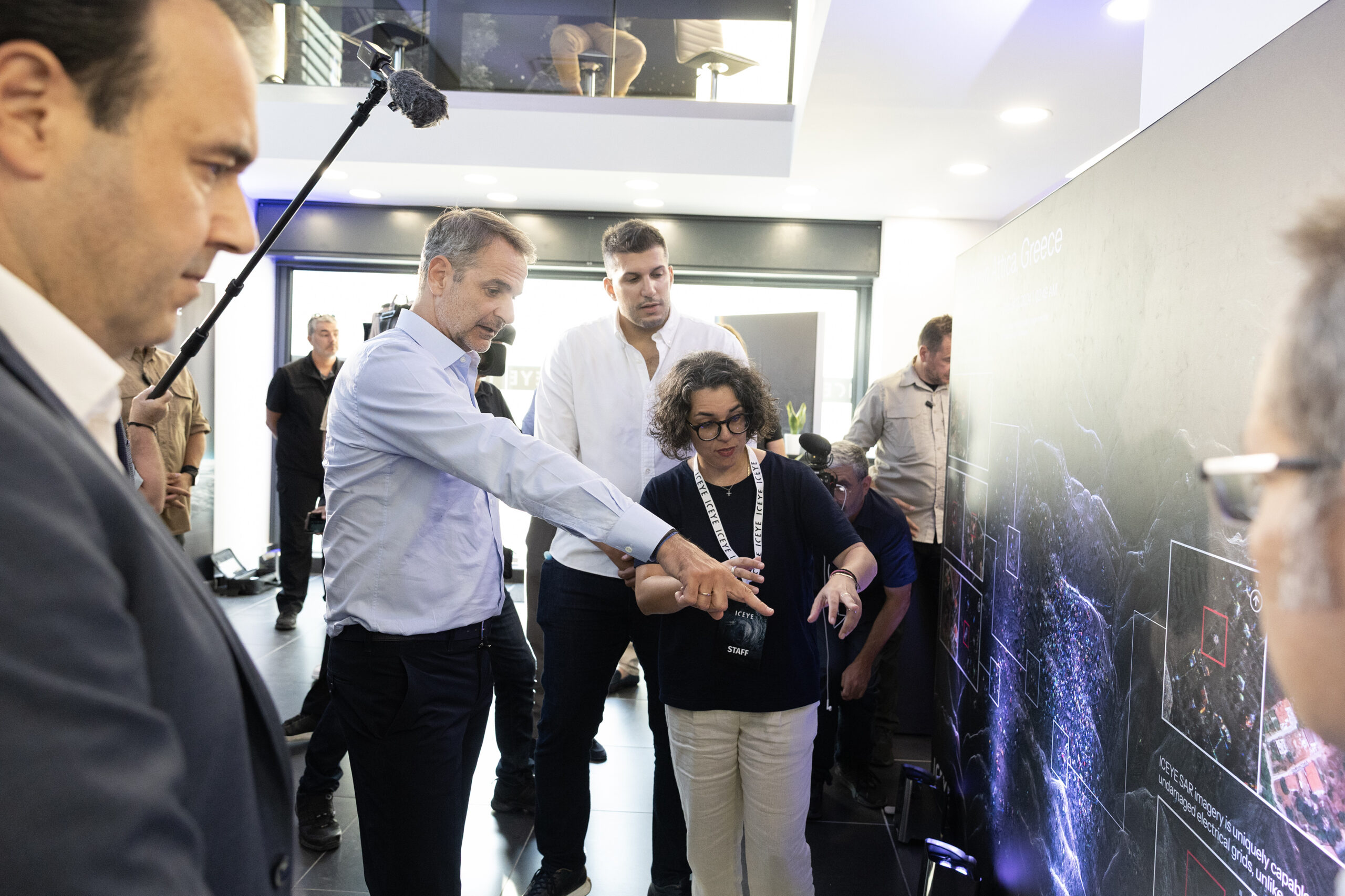 Ο Πρωθυπουργός, συνοδευόμενος από τον Υπουργό Ψηφιακής Διακυβέρνησης Δημήτρη Παπαστεργίου και τον Υφυπουργό Χρήστο Δερμεντζόπουλο, ξεναγήθηκε στα γραφεία και τους χώρους παραγωγής της εταιρείας και ενημερώθηκε για τις δράσεις της από τον Διευθύνοντα Σύμβουλο της ICEYE Rafał Modrzewski και τον επικεφαλής της ICEYE Hellas Βασίλη Χαλουλάκο.